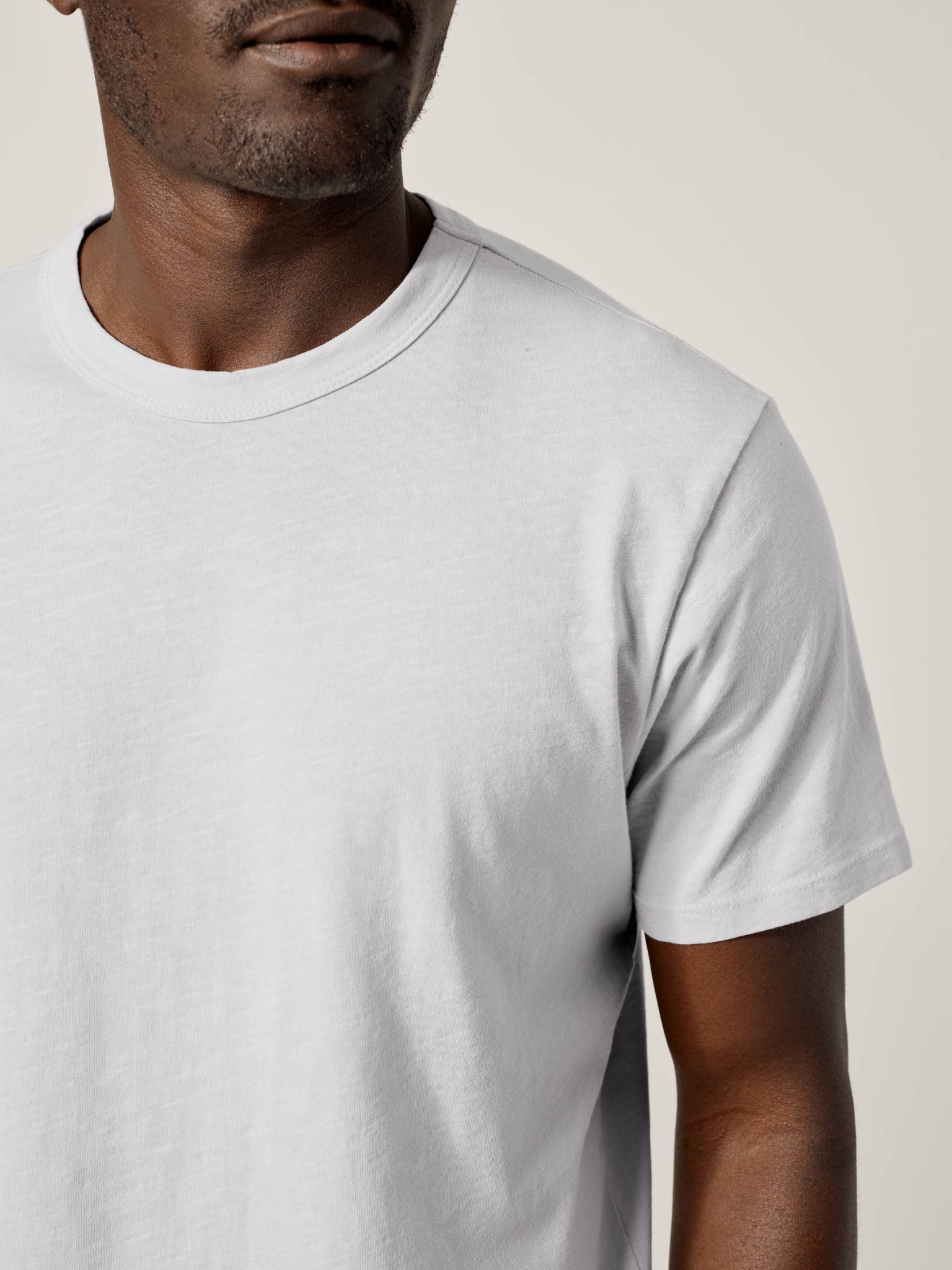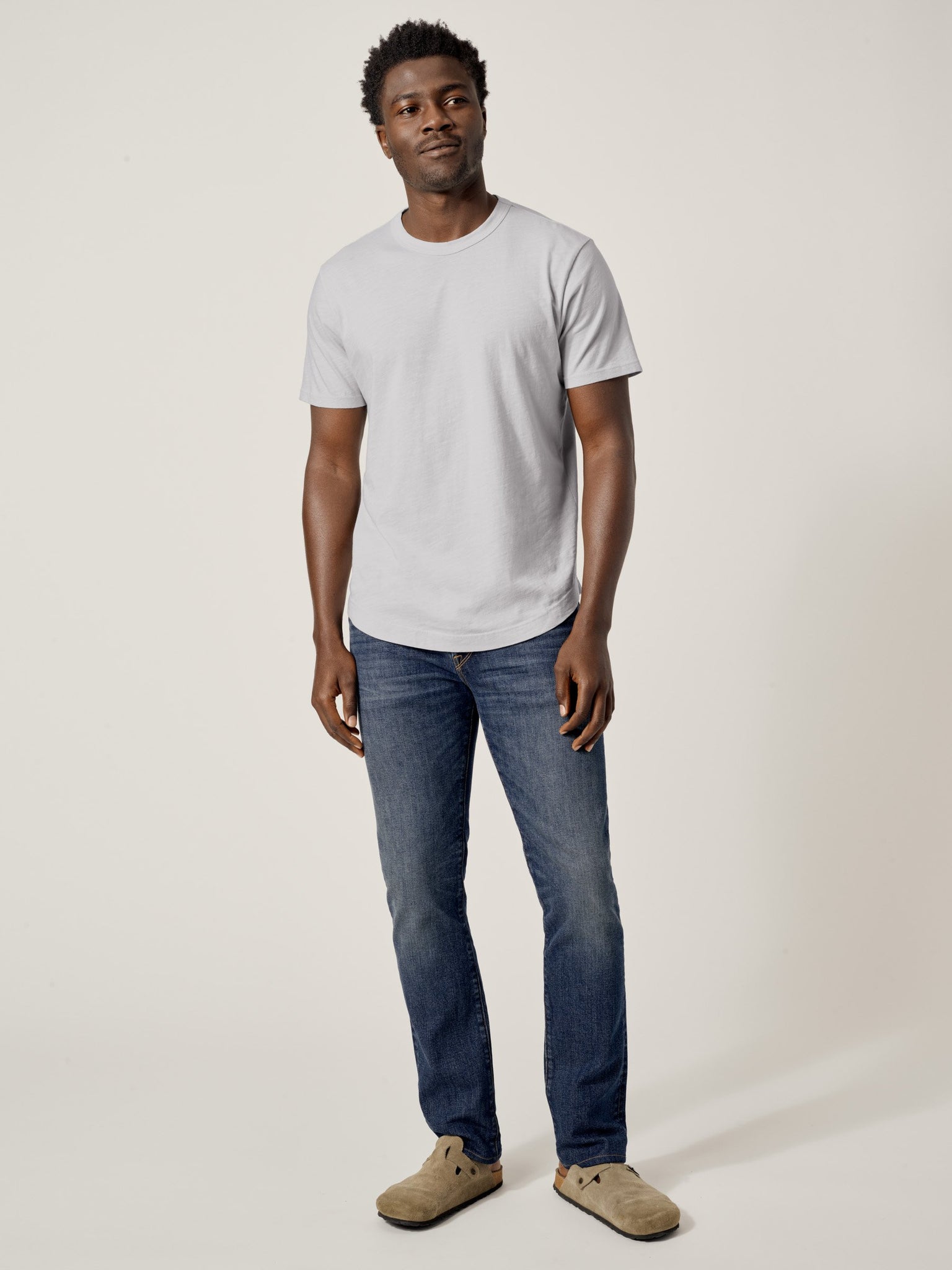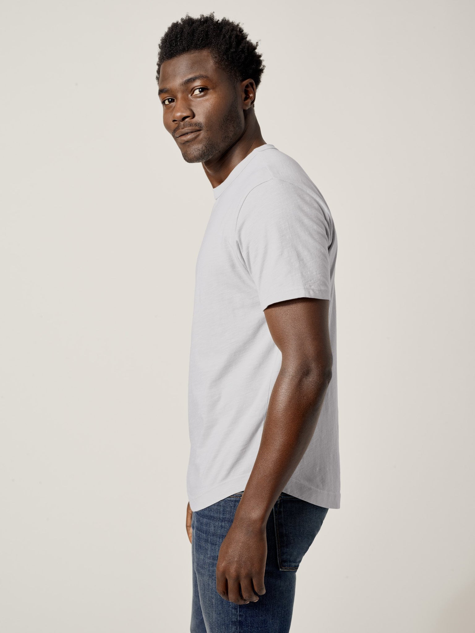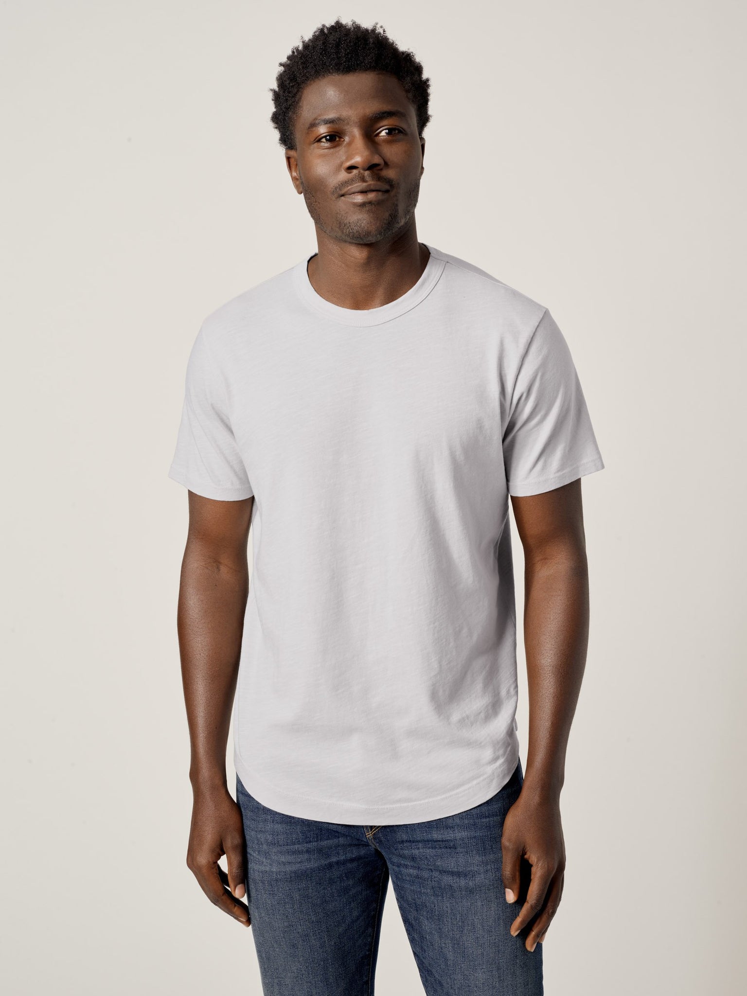 Our slub curved hem tee is built from beautiful 100% slub cotton. Slub is a lightly textured fabric made on small batch, low-tension looms. The neck opening leaves room to breathe, while the rounded shirttail lends a tailored look to an everyday essential.
