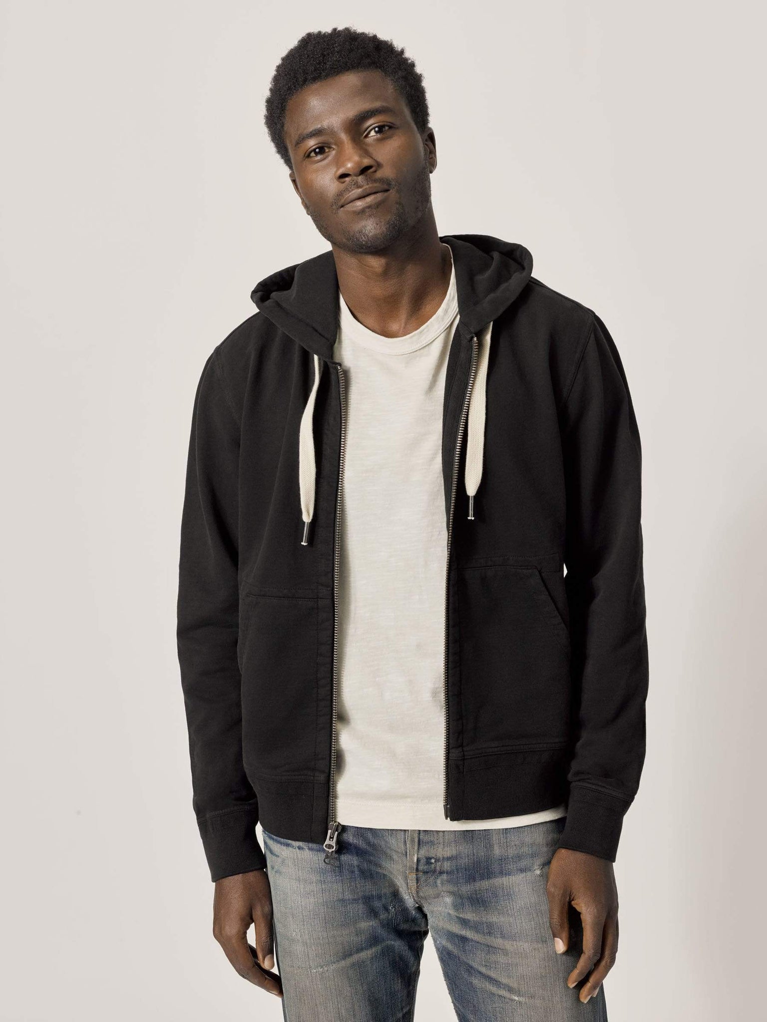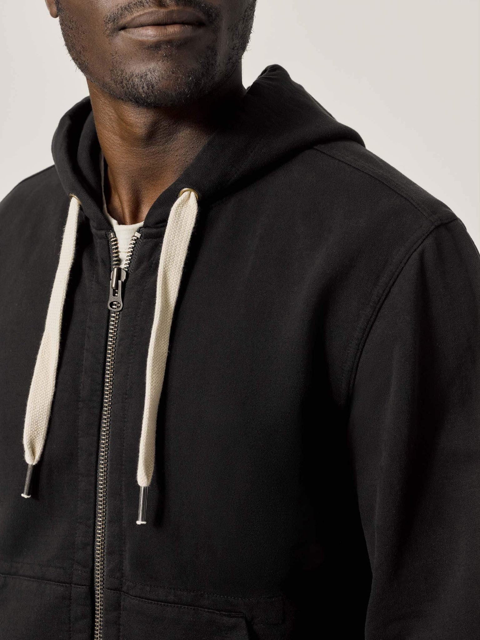 This full-cut, zip-up hoodie provides reliable warmth and durable construction under the harshest conditions. The outside of the fabric is soft and flat, brushed for added warmth with a looped, towel-like interior. The side seams are constructed with a durable flat lock stitch, with twill tape for added strength. This hoodie will look even better a thousand wears down the road.